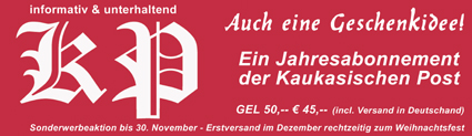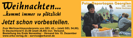 Oder den Fotobildband von Rainer Kaufmann, Herausgeber und Redakteur der Kaukasischen Post mit Reportagefotos aus den letzten 20 Jahren. Bestellung über service@erkanet.de. Mehr Infos auf: www.erka-verlag.de.