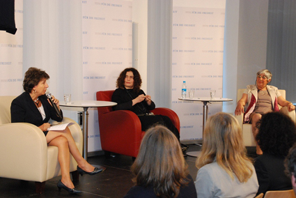 Das Bild zeigt (v.l.n.r.) Salpi Ghazarian, Direktorin von Civilitas Foundation, Armenien; Arsinée Khanjian, armenische Schauspielerin und Filmemacherin, Fethiye Çetin, türkische Autorin und Menschenrechtsaktivistin