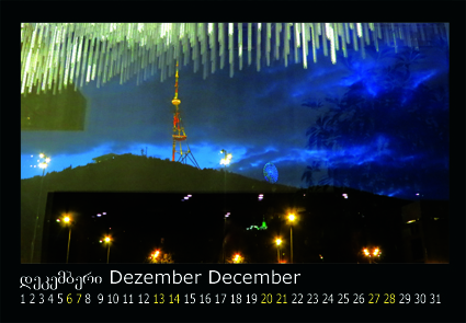 Einen Fotokalender 2014 mit besonderen Einsichten in die faszinierende Welt Georgiens, die neue wie die alte, gibt der Verlag der Kaukasischen Post KAROmedia im Dezember in Zusammenarbeit mit dem ERKA-Verlag/Bruchsal heraus. 13 außergewöhnliche Fotos im Format DIN A 3. Erhältlich ab 1. Dezember im Tbilisi-Travel-Shop, Tamriko-Tshovelidse-Straße 43 (früher Belinski-Straße/Ecke Barnovi-Straße).
