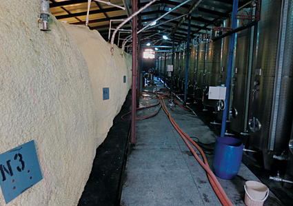 Dementsprechend sieht der Betrieb heute auch noch an einigen Stellen aus, das technische Erbe der Sowjetunion ist noch immer erkennbar, ein interessanter Kontrast zu den vielen Millionen schweren Auslandsinvestitionen im georgischen Weinbau. Trotzdem konnte man aus eigener Kraft auch in den letzten Jahren einiges investieren, zum Beispiel in die Abfülltechnik oder die Traubenannahme. Den ersten großen Investitionsschub mit rund 600.000 Dollar gab es in diesem Jahr mit neuen Pressen und neuen Edelstahltanks, die mit Hilfe des gerade etablierten Agrarfonds und dessen attraktiven Zinsen von real drei Prozent möglich wurden. Und im alten „Roten Keller“ der Sowjetzeit hat man jetzt wieder Kvevris eingebaut, um an die vor-sowjetische Tradition anzuknüpfen.