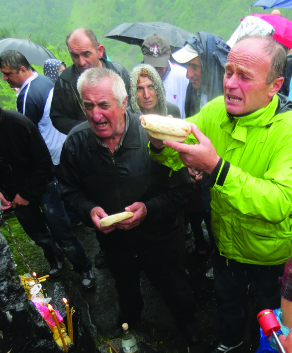 Zwei Tage später findet im Dörfchen Adischi ein weiteres Wallfahrtsfest statt, das eher an vorchristliches Brauchtum erinnert. Es wird Litschenische genannt. Adischi ist mit dem Auto nur sehr schwer zu erreichen. Die kleine Marien-Kirche, an der das Fest stattfindet, erfordert einen knapp einstündigen Fußmarsch ins Hochtal in Richtung Schkhara. Dort treffen am frühen Morgen bei Sonnenaufgang die Männer von Adische mit mindestens einem Dutzend Schafen ein. Die Schafe werden einzeln ins Innere der winzig kleinen Kirche geführt und mit lautstarken Gebeten geweiht. Mit einer Kerze wird das Fell angesengt, bevor sie dann vor der Kirche geopfert, sprich geschlachtet werden. Diese Zeremonie endet, wenn das Morgenlicht nicht mehr durch das schmale Kirchenfenster ins Innere der Kirche bricht. Ein klares Zeichen, dass es sich auch hier um einen Sonnenkult handelt, angereichert mit einem Fruchtbarkeitskult. Am Nachmittag versammelt sich dann die ganze Dorfbevölkerung mit angereisten Gästen, um die Schafe gemeinsam zu verzehren. Und die starken Männer des Dorfes messen sich nebenbei im Steineheben.