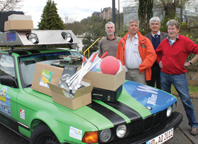 Eine verrückte Idee, ein spannendes Abenteuer, ein unschlagbares Event …? Die Allgäu-Orient-Rallye ist weitaus mehr: 120 Fahrer-Teams starteten Ende April in Oberstaufen im Allgäu nach Baku am Kaspischen Meer: Autobahnen sind tabu, GPS-Systeme nicht erlaubt. Weil die Fahrzeuge mindestens 20 Jahre alt oder weniger als 1.111,11 Euro wert sein dürfen, sind Pannen vorprogrammiert. Und doch wartet das erstmals teilnehmende „PANECK Racing Team“ mit einem recht ungewöhnlichen Tour-Equippment auf: Rote Klingel- und Gymnastikbälle, Blindenstöcke für Groß und Klein, verschiedene Lupen und taktile Karten, Braillemaschinen, Papier und Dymostrips – eine Spende der Deutsche Blindenstudienanstalt e.V. (blista) im Wert von rund 1.000 Euro füllt den Kofferraum des 7-er BMWs.